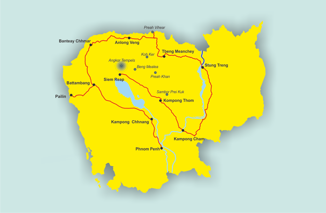 Cambodja Grensverleggende nieuwe reis . Met behalve de bekende centrale tempels rond Angkor Wat de afgelegen prachtige complexen Banteay Chhmar, Koh Ker, Preah Vihear én de omstreden tempels op de grens met Thailand waar je vaak de enige bezoeker bent. En met behalve de Killing Fields van de Rode Khmer ook hun enclaves Pailin en Anlong Veng, het vergane huis van hun leidsman Pol Pot en een reeks andere restanten van deze radicale beweging. |